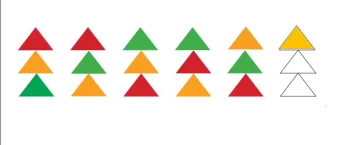 Бірінші қатардағы бөлшектер орналасу заңдылығы: көк, қызыл, сары, көк, қызыл, сары . Екінші қатардағы бөлшектер орналасу заңдылығы: көк, екі қызыл, көк, екі қызыл.