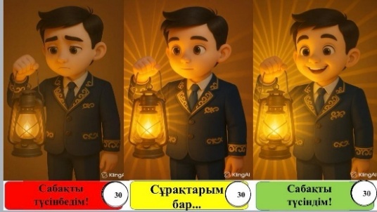 Тақтадағы себеттерге синоним,омоним, антоним сөздерді дұрыс орналастырып,мағыналарын ашып түсіндіреді. Сұрақтарға белсенді жауап береді. Сабақ туралы ойын экранда берілген сурет бойынша білдіреді. Кері байланыс жасайды . |