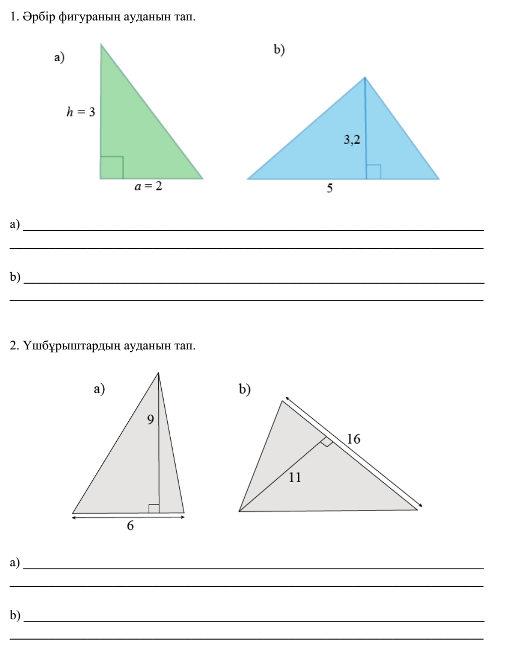 Төртбұрыштар мен үшбұрыштардың аудандары |