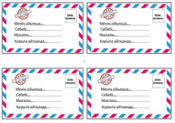 Оқушылар есепті шығарып жауаптарын белгілейді. Құнды пікірлерін хатқа жазып артына почтаға салады.