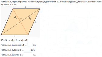 Диагональдары 8 см және 10 см болатын ромб. Осы ромбтың ауданын табыңдар.