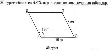 8.1.3.11 параллелограммның, ромбтың ауданы формулаларын қорытып шығару және қолдану; |