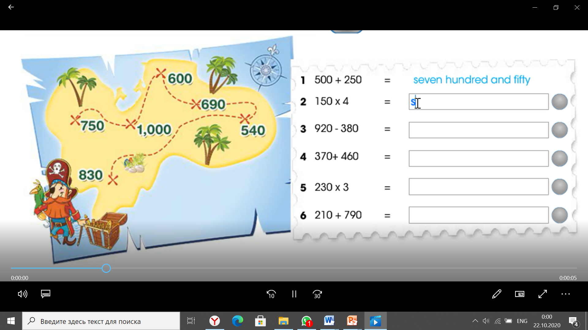 5. Find Captain Jack Sparrow’s treasure! Do the sums and cross off the places on the map. The last plase is where the treasure is. The second point is Yurt. To reach the second heritage learners count numbers and write the summary. Such way they can remember written form of the numbers.
