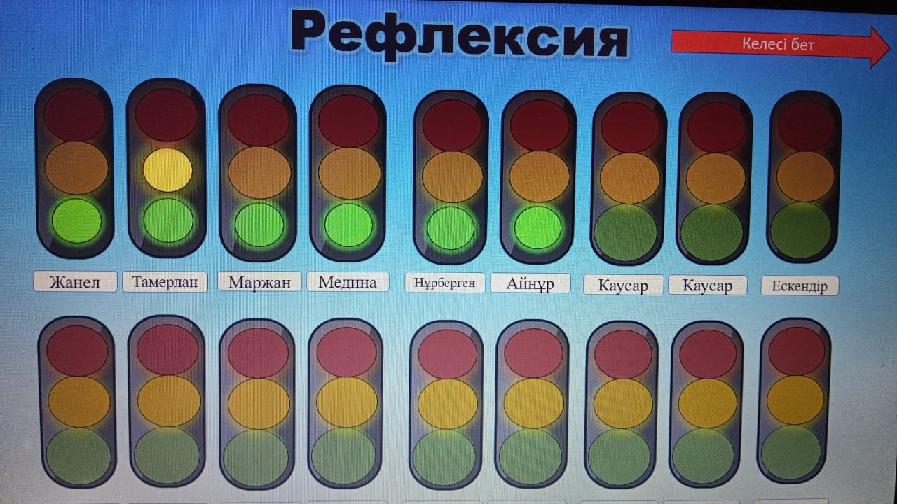 Сабақты қорытындылау: Т.Әубәкіров тұңғыш ғарышкер туралы сәйкестендіру кестесін орындау. Үйге тапсырма Ұшты зымыран аспанға өлеңін жатқа айту 77- бет. Рефлексия Мұғалім сабақты қорытындылау мақсатында оқушылардың сабақты қаншалықты деңгейде түсінгендіктерін «Бағдаршам» әдісі арқылы кері байланыс жасау. |