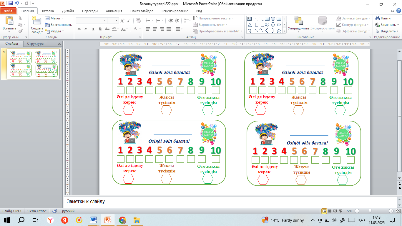 Оқушылар Берілген бағалау парақтарын алып өз-өздерін бағалап отырады
