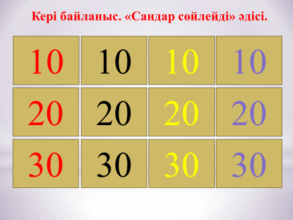 Сабақтың тақырыбын қорытындылайды. «Сандар сөйлейді» әдісі бойынша санды таңдап, сұрағына жауап береді.
