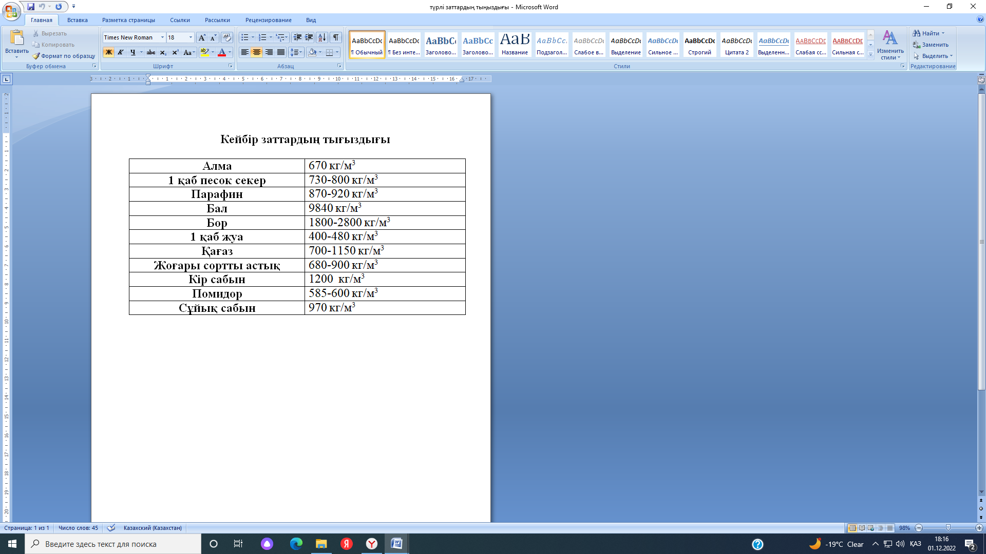 Сабақтың тақырыбы: Тығыздықты есептеу