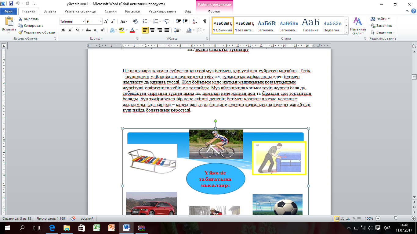 7.2.2.6 – тыныштық, домалау және сырғанау үйкелістерін сипаттау; 7.2.2.7 – үйкеліс күшінің пайдасы мен зиянына мысалдар келтіру |
