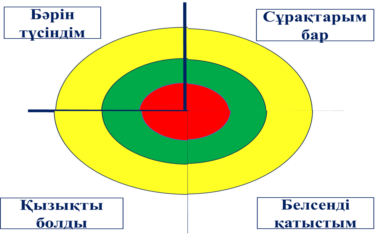 Тамаша! Дескриптор: Мәтіндегі қарияға қойылған сұрақтардың жауабын түсіндіріп айта алады-1б Сұрақтарға толық жауап береді-1б Дескриптор: Сурет бойынша ұлттық ойындарды атайды-1б Дескриптор: Ұлттық ойындарға қатысты сөздер тауып айтады-1б, Дескриптор: Ойынның шарты бойынша сұрақ құрастырады, таныстырылым жасайды -1б Дескриптор: Сұрақтарға толық жауап береді-1б Өз ойын еркін жеткізе біледі-1б ҚБ: Дескриптор: Мәтінді түсініп оқыды-1б Дескриптор: Артық суретті біледі, ойындарды топтастыра алады, сөздерді дұрыс оқиды-1б, Жарайсыңдар Дескриптор: Асықтың түсу атауларын біледі 1б Ұлттық ойындардың бірі нысананы дәлдеп тигізетін ойын бойынша кері байланыс беріңіздер. «Нысана» әдісі Нақты , дәлелді кері байланыс береді.  |