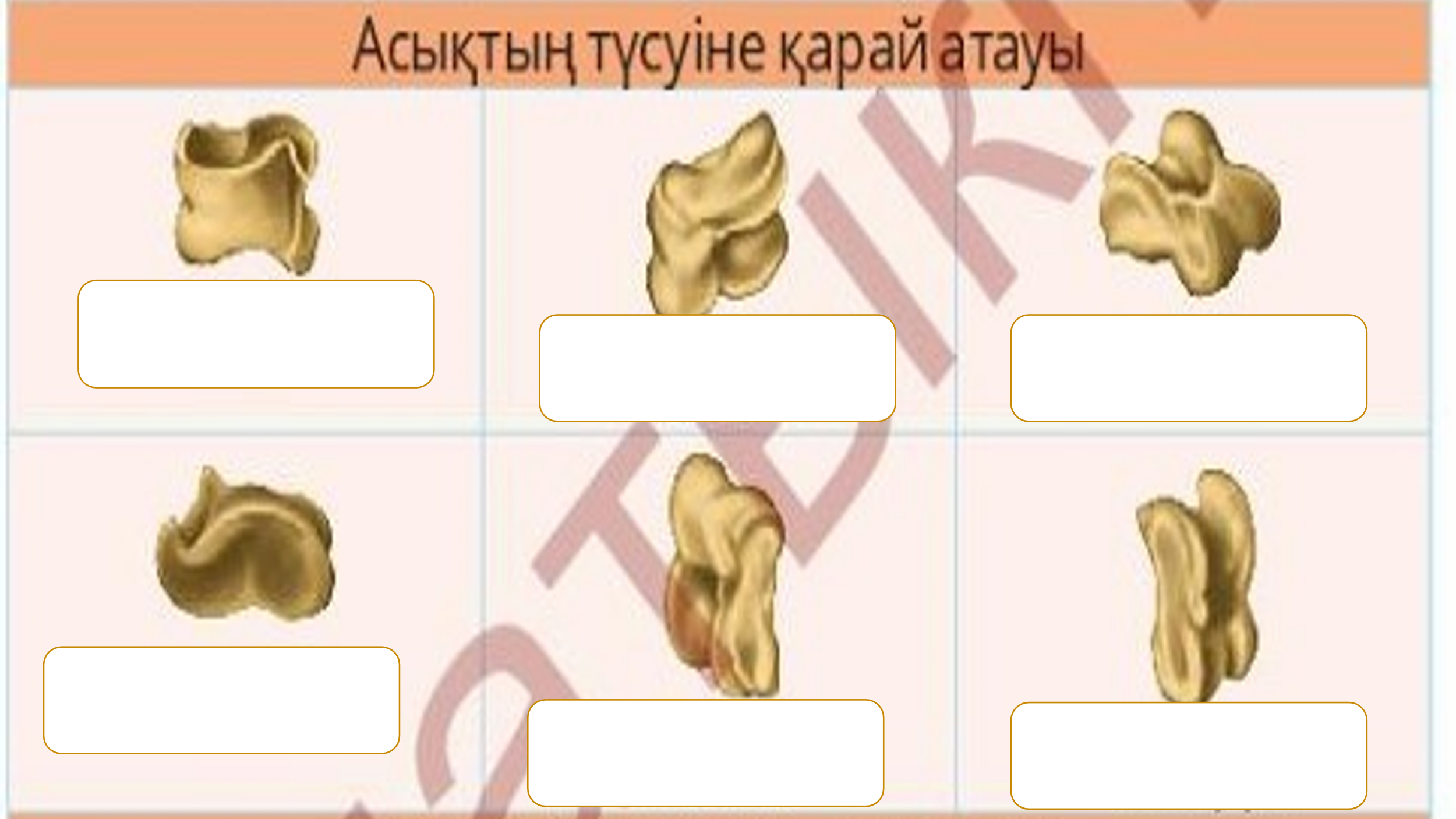 2-тапсырма. Топтық жұмыс І топ «Қызыл асықтар» тобы «Хан» ойыны туралы оқып береді. ІІ топ «Жасыл асықтар» тобы мәтін бойынша сұрақ құрастырасыздар. ІІІ топ «Көк асықтар»тобы осы «Хан» ойынына таныстырылым жасайсыздар. Сергіту сәті асық ойыны арқылы әркім өз пікірін айтады. 3-тапсырма «Пікіріңді айт» айдары «Асық» ойыны 1.Асық ойынын ойнап көрдің бе? 2.Неліктен асық ойыны деп аталған? 3.Хан ойыны ертедегі ұлттық ойын екенін дәлелде. 4.Ханмен байланысты тағы қандай ойындарды білесің? 5.Асық ойынын ойнау үшін не қажет деп ойлайсың? 6.Ұлттық ойындарының пайдасы бар ма? 7.Қазіргі кезде неге асық ойынын ойнау сиреп барады? 8.Ұлттық ойындарымыз ата. 9.Ұлттық ойындары неліктен маңызды? 10.Асықты иіріп көрсетіңіз. 11.Асықты қалай көздейсіз? 12.Неліктен асықты көздеп ату керек? Бірлескен жұмыс ЕБҚ және ЕҚБ Сәйкестендіру. Суреттерді ойынның атауымен сәйкестендіреді. 4-тапсырма Топтық жұмыс І топ «Қызыл асықтар» тобы «Артық суреттерді тап» артық суретті алып тастап қалғанын желімдейді, топтастырады. ІІ топ «Жасыл асықтар тобы» ұлттық ойындарды және спорттық ойындарды топтастырады. ІІІ топ «Көк асықтар»тобы парақшада жазылған сөздердегі түсіп қалған әріптерді жазады. Жұптық жұмыс Асықтың түсу атауларын жаз.
