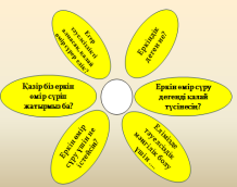 (Ұ) «Блум» түймедағы әдісі бойынша Қарапайым сұрақ Дәлел сұрақ Интерпретациялық сұрақ Тәжірибелік сұрақ Бағалау сұрағы Шығармашылық сұрақ бағытында берілген сұрақтарға жауап бере отырып, өз көзқарасын жеткізу.