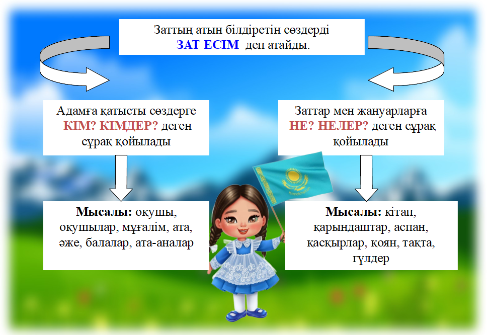 Жаңа тақырыппен таныстыру. Зат есім туралы түсінік беріледі.
