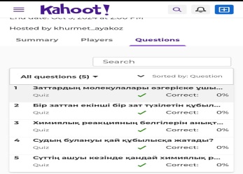 Өткен тақырып бойынша «Kahoot» әдісі арқылы тапсырма беріледі |