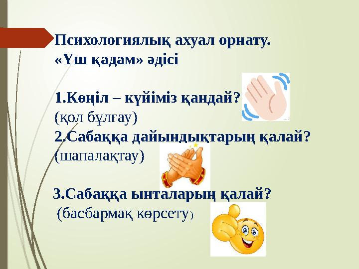 Сабақтың тақырыбы мен мақсатын анықтайды.