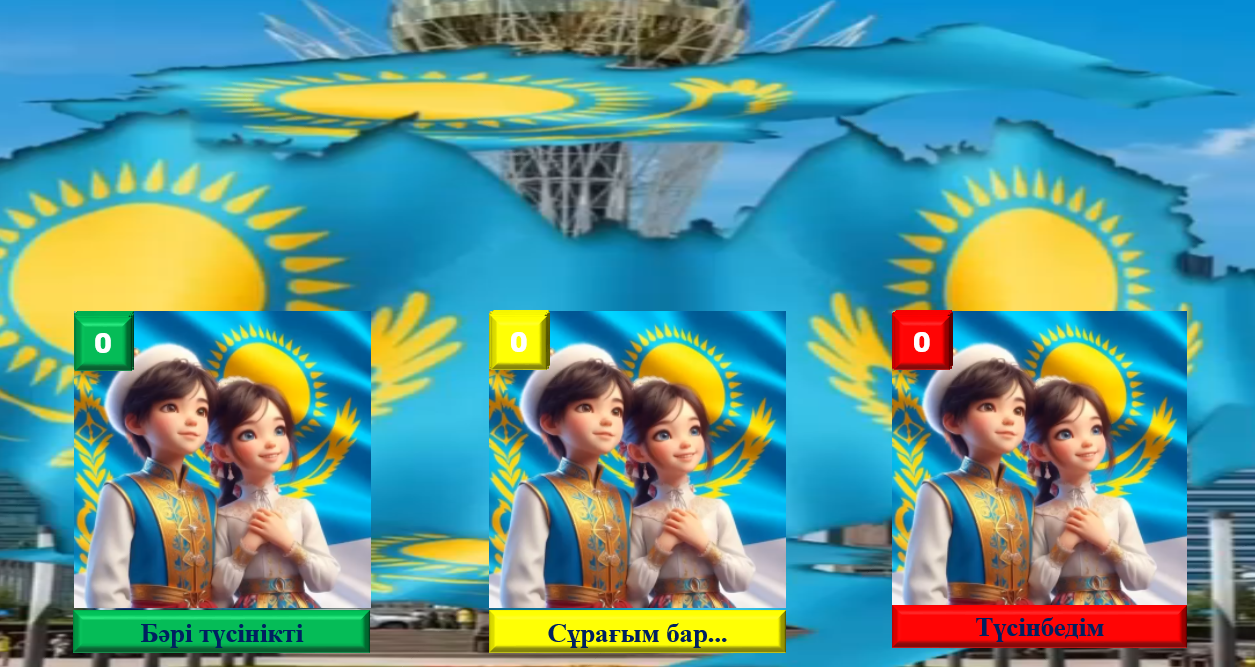 Мақтап, мадақтап отыру Дескриптор: Кестені өз жауабымен толтырады-1б Сұрақ-жауап -1 б Дескриптор: Сөздерді түсініп оқиды-1б Дескриптор: Мәтінді түсініп оқиды-1б Мазмұны бойынша сұрақтарға толық жауап береді-1 б Дескриптор: Топпен жұмыс жасайды-1б Мәліметті ортаға салады-1б Ортаға шығып жұмысты қорғайды-1б Дескриптор: «Дастарқан басында өзіңді ұстай біл» деген тақырыпта ереже жазады-1б Дескриптор: Сұраққа жауапты мәтіннен таба алады-1б Мадақтау Мадақтау |