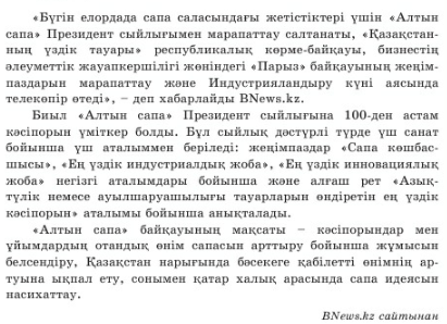 Оқушылар,бүгінгі сабағымыздың тақырыбы: Заманауи индустрия: ұлттық өндіріс жетістіктері. Сабақ мақсаты: мәтінде көтерілген мәселеге автор мен оқырманның қарым-қатынасын ескере отырып, сұрақтар құрастыру және бағалау 1-топ