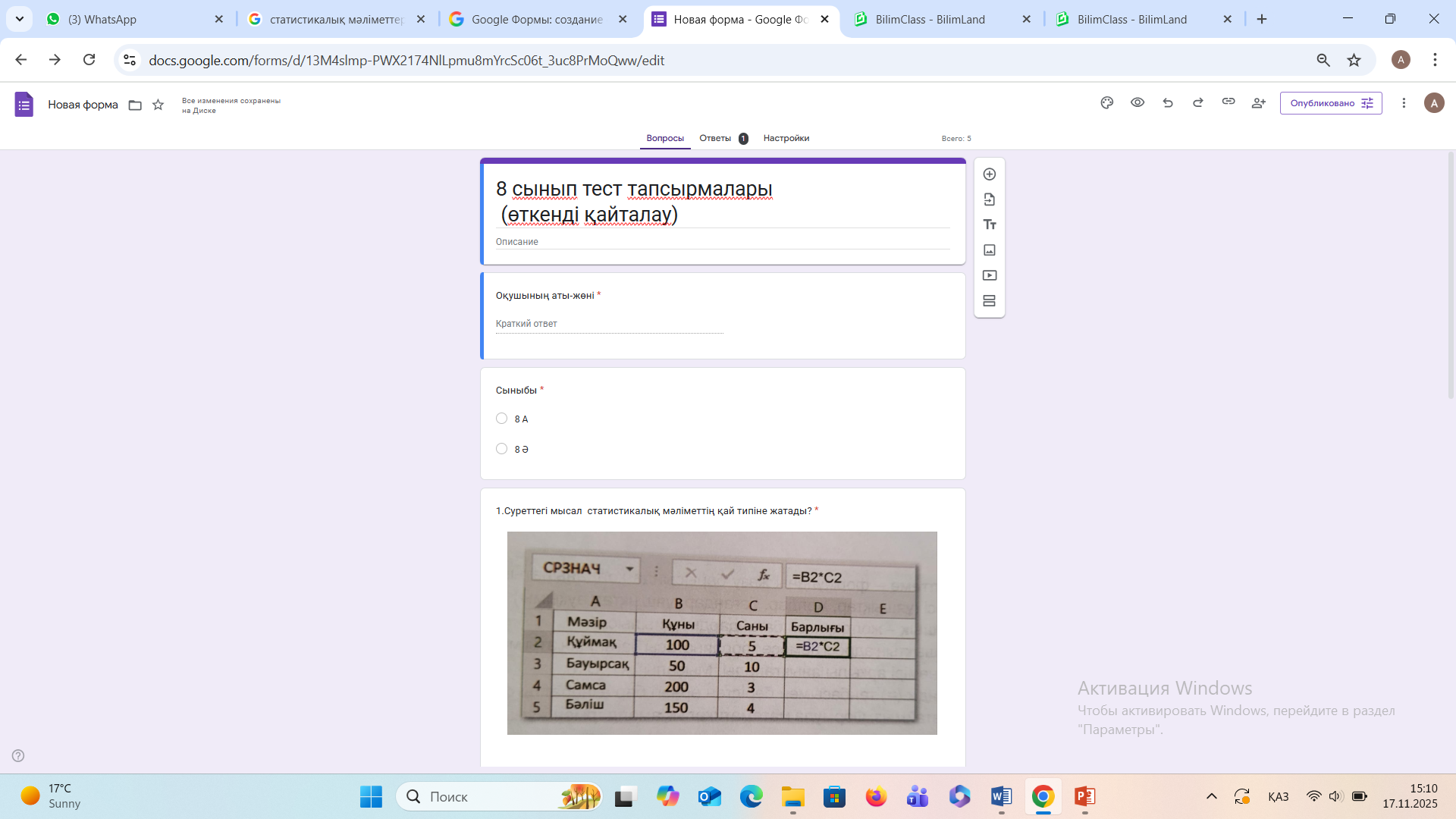 Сынып: 8 А |