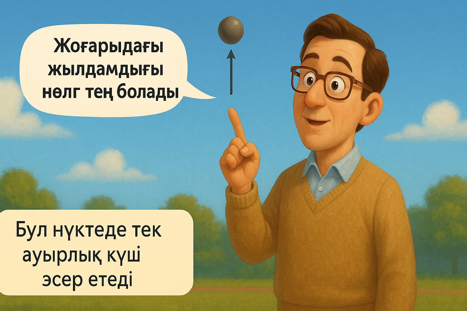 Дискриптор : ЖИ көмегімен берілген тапсырманы орындай алады; Гравитациялық өрістегі снарядтың қозғалысын біледі; Көкжиекке бұрыш жасай және вертикаль лақтырылған дененің қозғалысы кезіндегі физикалық шамалардың өзгерісін сипаттай алады;
