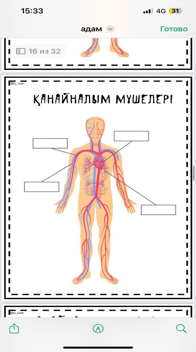 Қанайналым мүшелерінің атауларын жаз. «Ойлан,жұптас,талқылы»