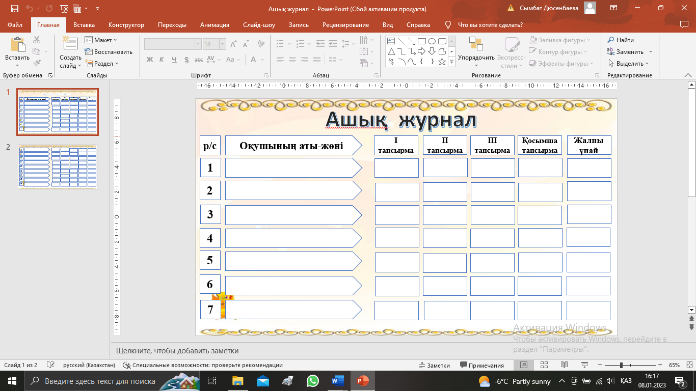 Сабақтың басы 2 минут |