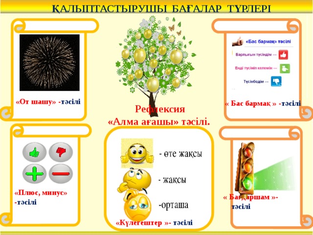 ҚБ: Мұғалімнің ауызша мадақтау, оқушылардың өзара қолпаштауы. С: қолдау, қарқын,