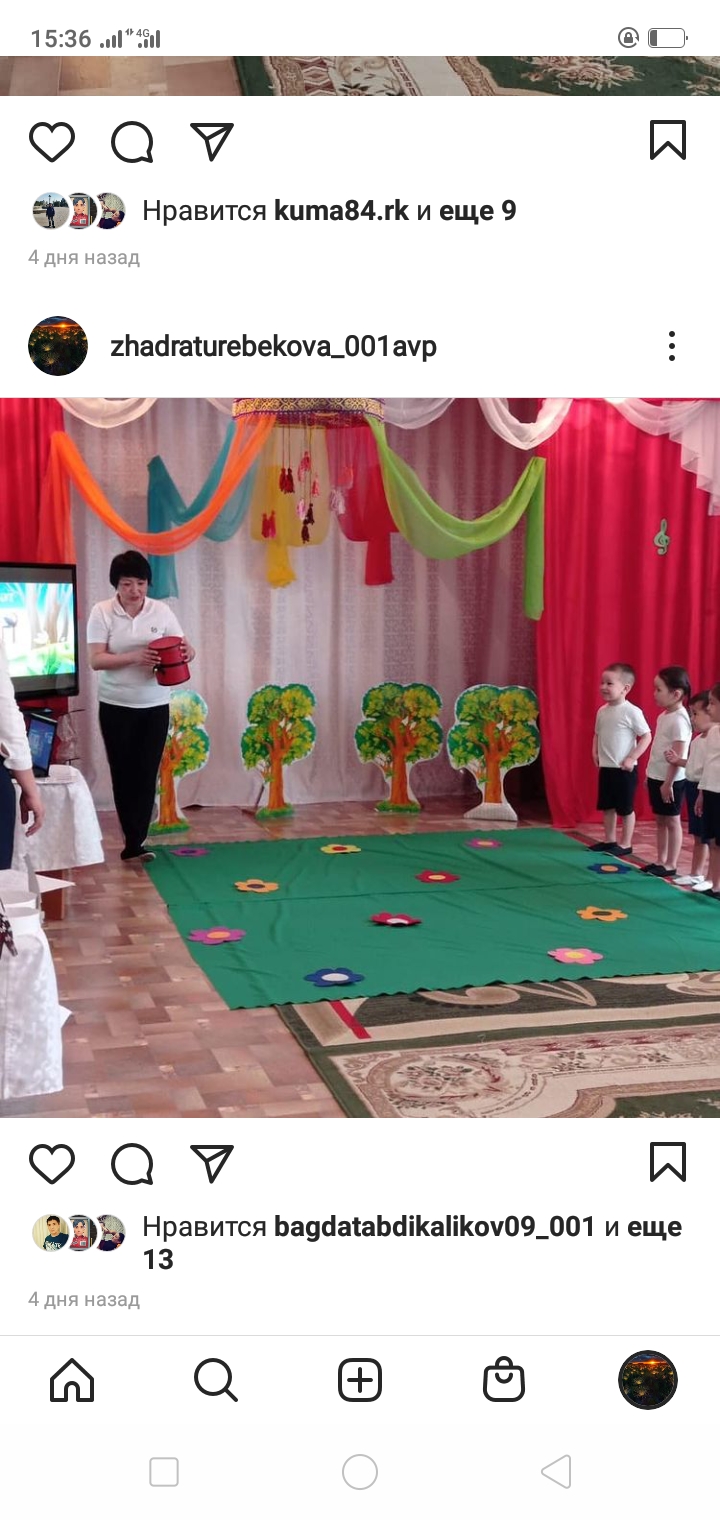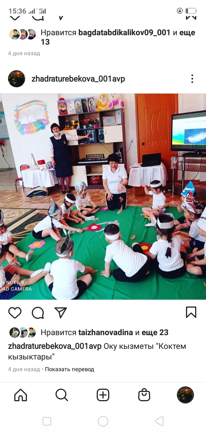 Ура!бізде бәрі жақсы. Біз барлық тапсырманы орындадық. Жаман сиқырлар жойылды. Енді балалар мен сендерге түрікше еденге отырып,көздерімізді жұмамыз. Балалар енді ненын даусын естіп отырсыздар?
