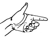 Отырып жасаймыз. 2-3 секунд алға қара, содан назарыңды оң жақ қолыңның сұқ саусағына қара, ол мұрын алдында 25-30см жерде, 3-5 секундтан соң қолыңды жібер.