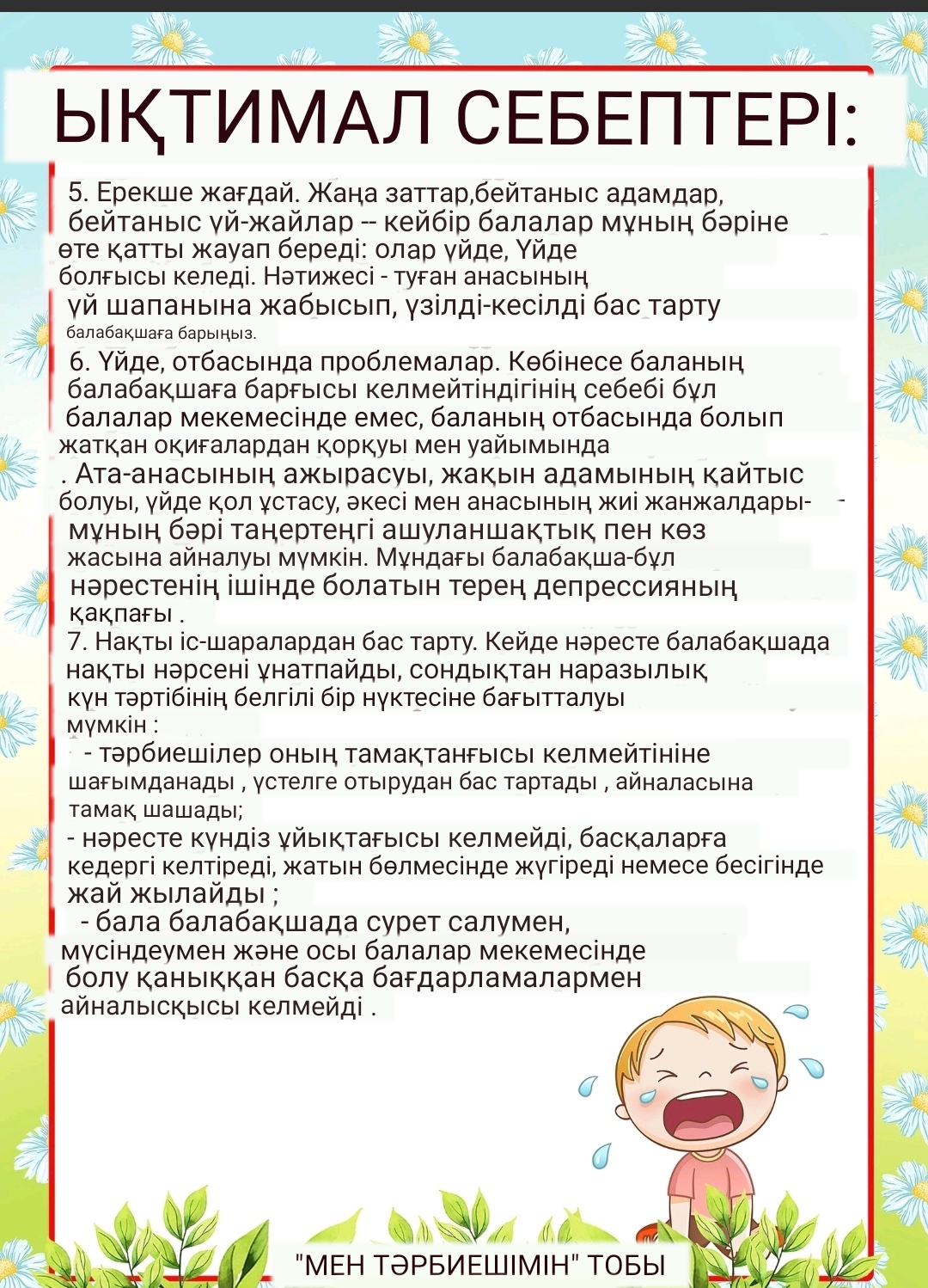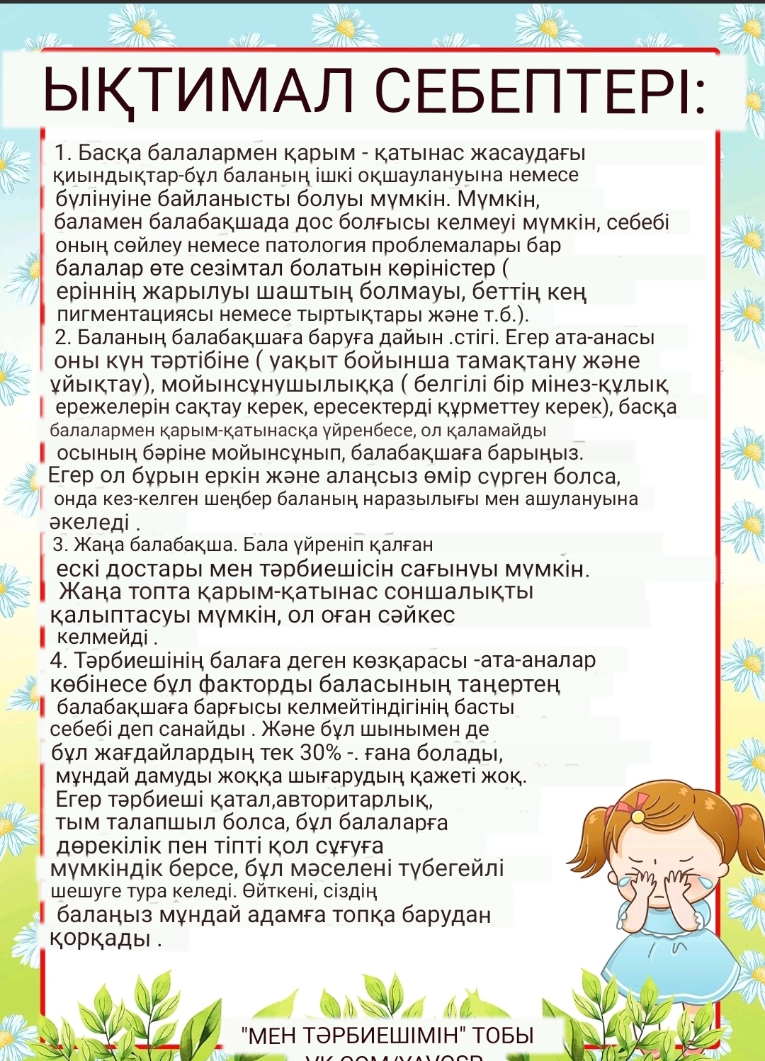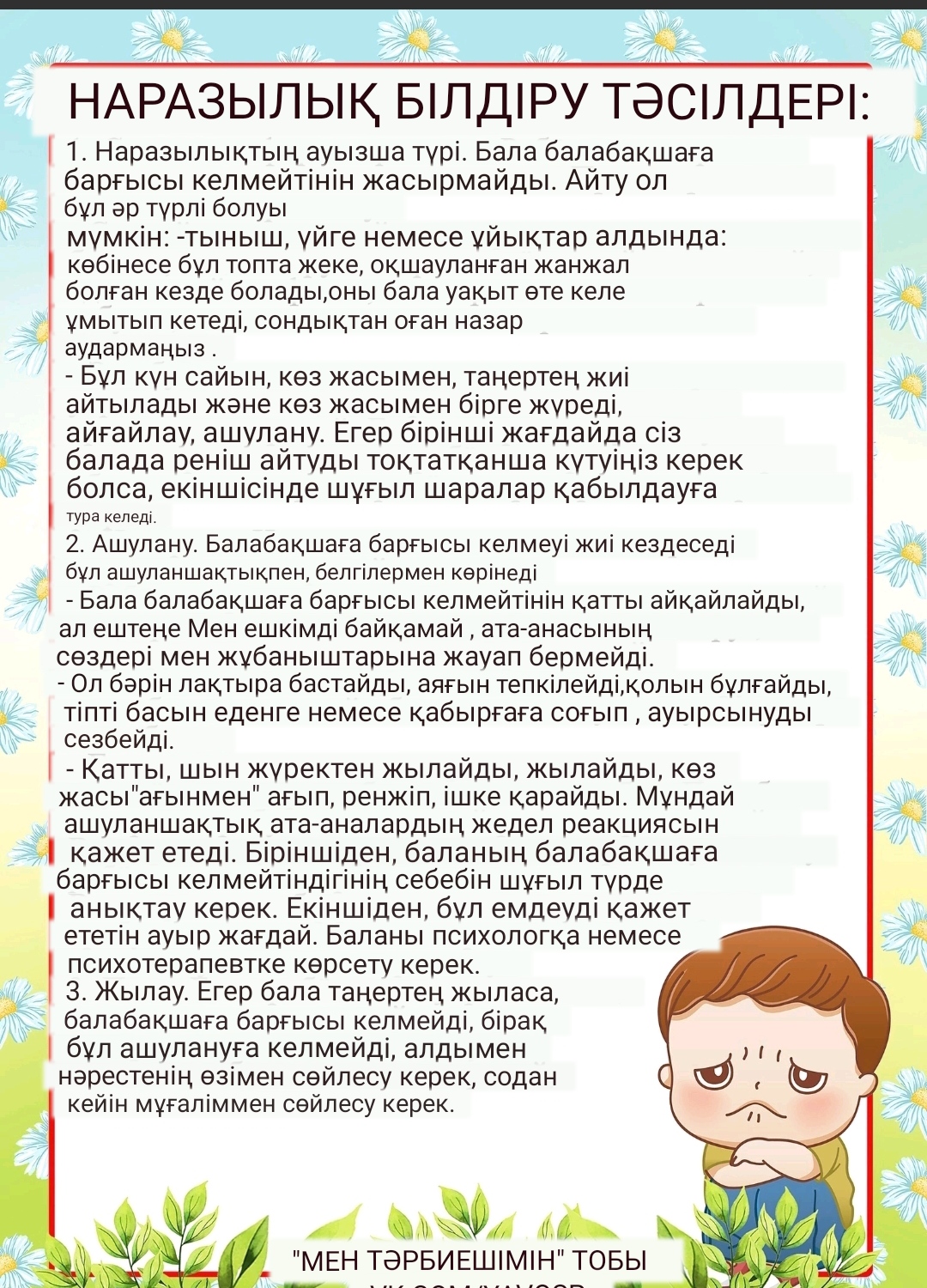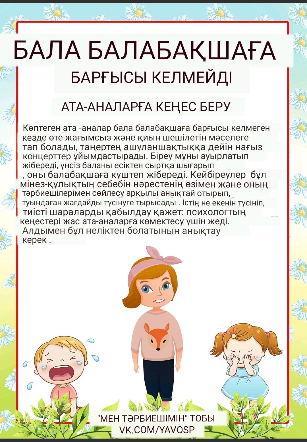 Ата-аналарға балаларының балабақшаға бейімделуі туралы