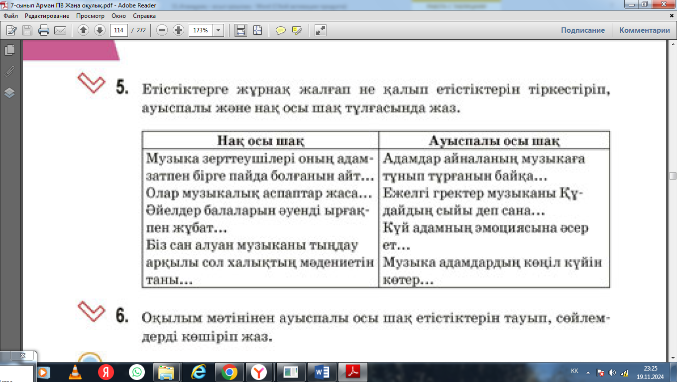 «Кім жылдам?» ойыны Оқылым мәтінінен ауыспалы осы шақ етістіктерін тауып, сөйлемдерді көшіріп жаз |