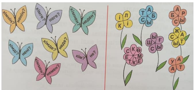 сұрақтарға жауап береді Ережемен танысады Берілген суреттерден атау септіктегі сөздер бастауыш болатындай сұрақ құрастырып жазады Өлеңді көшіріп жазады Атау септігіндегі зат есімдерді тауып,олар сөйлемде қандай мүше болып тұрғандарын айтады.. Септіктердің сұрағына сәйкес көбелектерді өз гүліне қондырады «Study stack» әдісімен флеш карта арқылы сұрақтарға жауап береді Өзіне-өзі кері байланыс береді. |