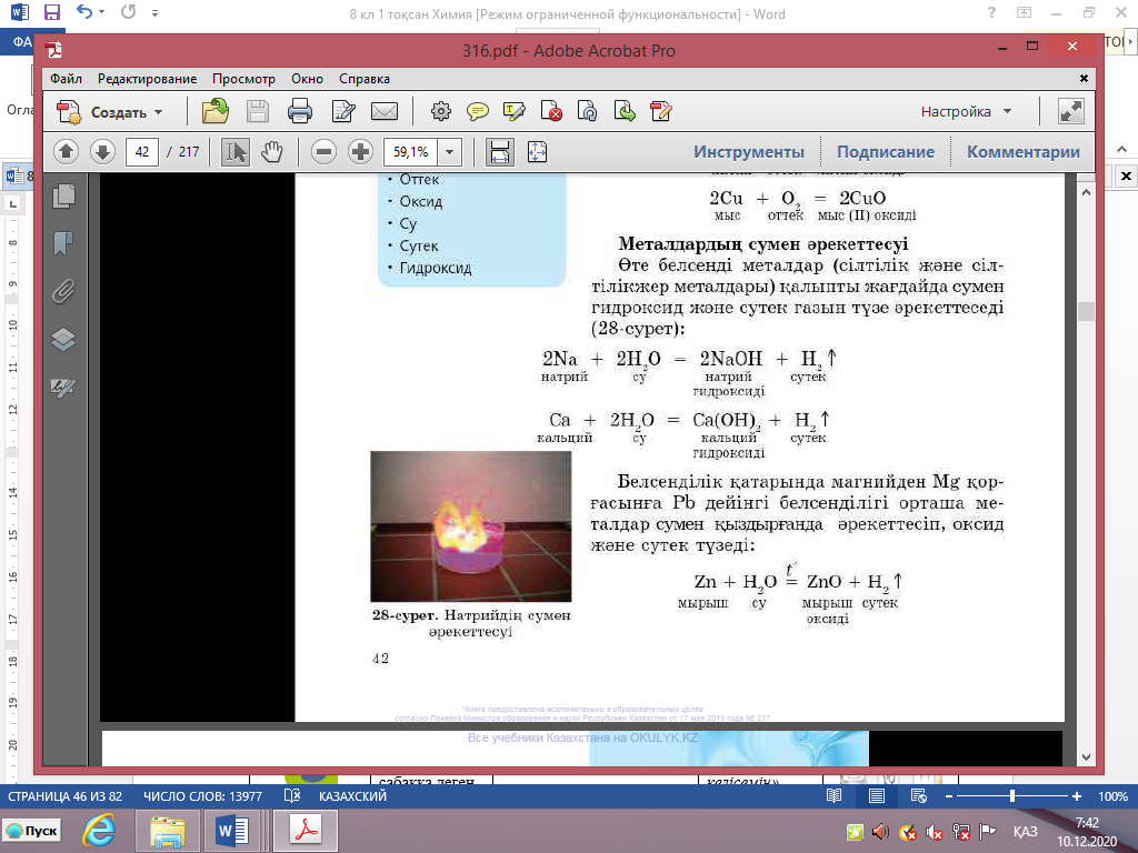 1 Тапсырма Натрийдің сумен әрекеттеуін реакция түрінді жазу