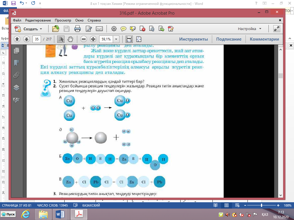 4. Тапсырма Сурет бойынша реакция теңдеулерін жазыңдар? Реакция типін анықтаңдар?