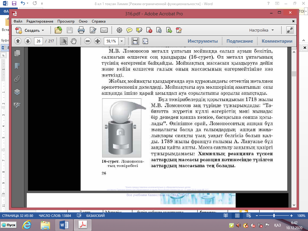 8.2.2.1 -бастапқы және түзілген заттардың саны мен құрамы бойынша химиялық реакцияларды жіктейді. |