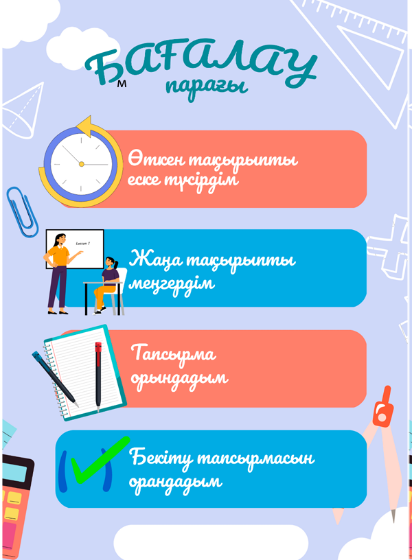 Педагогикалық жаңалығы: Шығармашылық тапсырмалар жүйелі әрі мақсатты түрде енгізіледі. Сабақ құрылымында оқушының белсенділігі басты орын алады. Оқытудың нәтижесі тек біліммен емес, шығармашылық өніммен бағаланады.