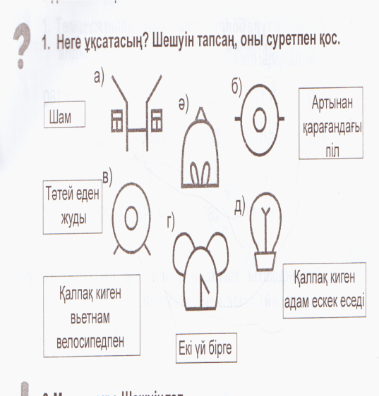 1.Қиялды жетілдіру ойыны. Неге ұқсатасың? Шешуін тапсаң оны суретпен қос.