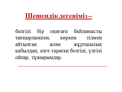 «Шешендік сөздер дегеніміз не?» /1 сағат/