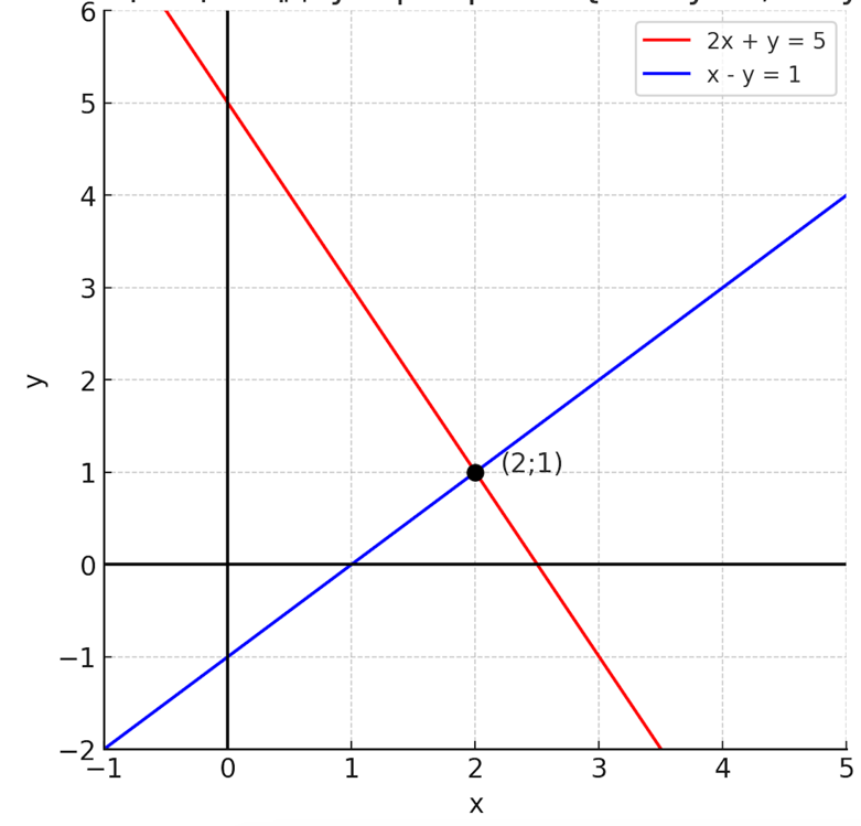 {3х+2у=12; х–у=1} → (2,67;1,67)