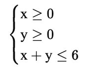 {х≥0; у≥0; х+у≤6} (төбелер: (0;0), (6;0), (0;6))