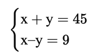 «Ұпайлар: математикадан х, физикадан у. Барлығы 90, математика физикадан 10 артық». → (50;40)