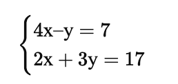 {х–2у=4; 2х+3у=17} → (5;0,5)