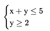 {х+у≤5; у≥2} (аймақ: у≥2, х≤5–у)