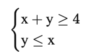 {у≥х; х+у≥4} (аймақ: у≥х және у≥4–х)