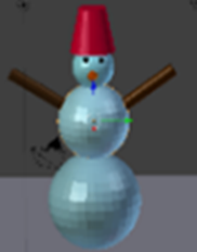 1. Аққаланың беті үш элементтен тұрады: екі көз және сәбіз – мұрыннан. Көзін жасау үшін екі кіші сфера алынады. 2. Сәбізді конустан жасаймыз. SHIFT+A комбинациясы және одан конусты таңдап аламыз. Одан аққаланың мұрнын жасау оны аудару керек: экранның төменгі бөлігінен нұсқағышты (указатель) таңдау арқылы іске асады.