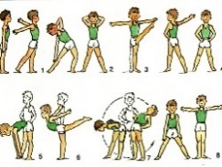 Ученики приветствуют и делятся на 3 группы. |