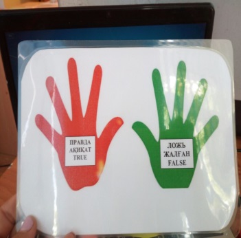 Т.- Алдыңғы сабақта өткендерімізді есімізге түсіріп, «Ақиқат, жалған » деген ойын ойнаймыз.