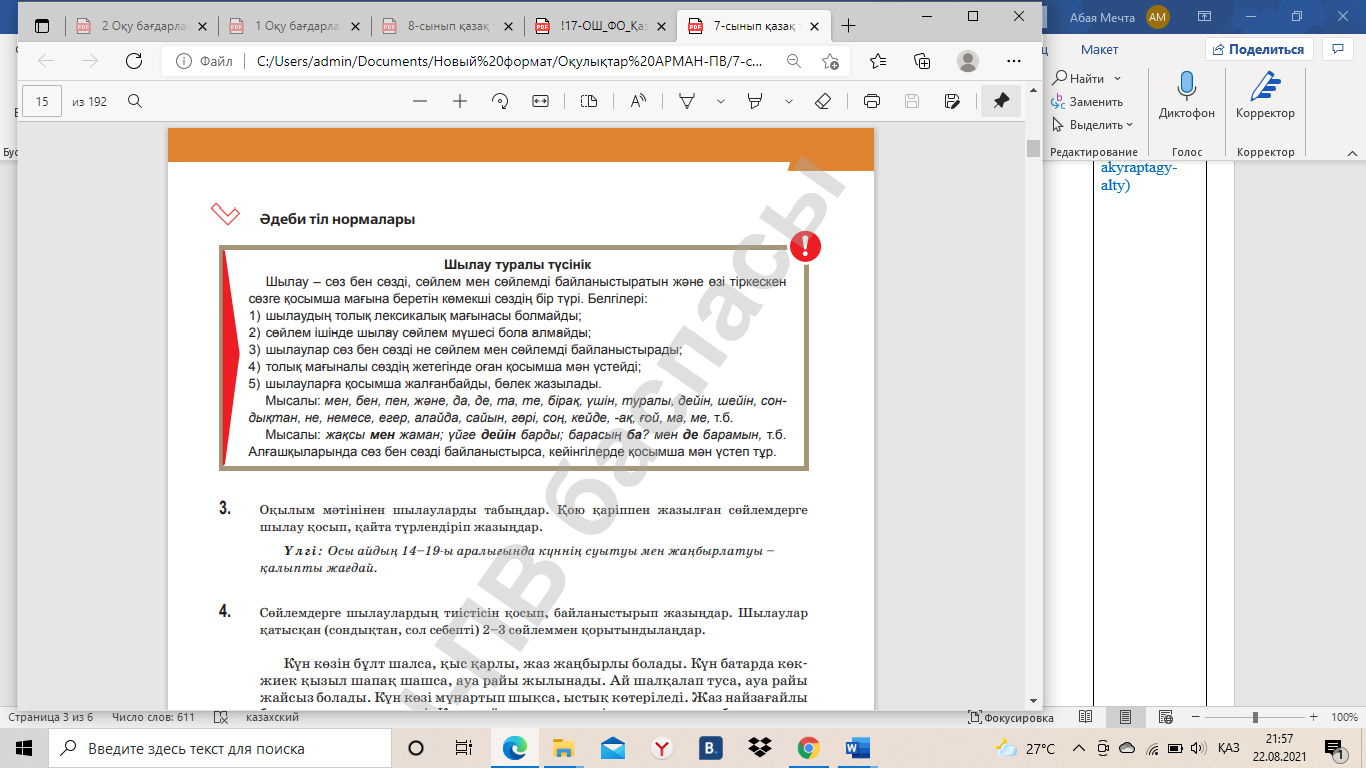 Грамматикалық тапсырма орындайды. Оқылым мәтінінен шылауларды табыңдар. Қою қаріппен жазылған сөйлемдерге шылау қосып, қайта түрлендіріп жазыңдар.