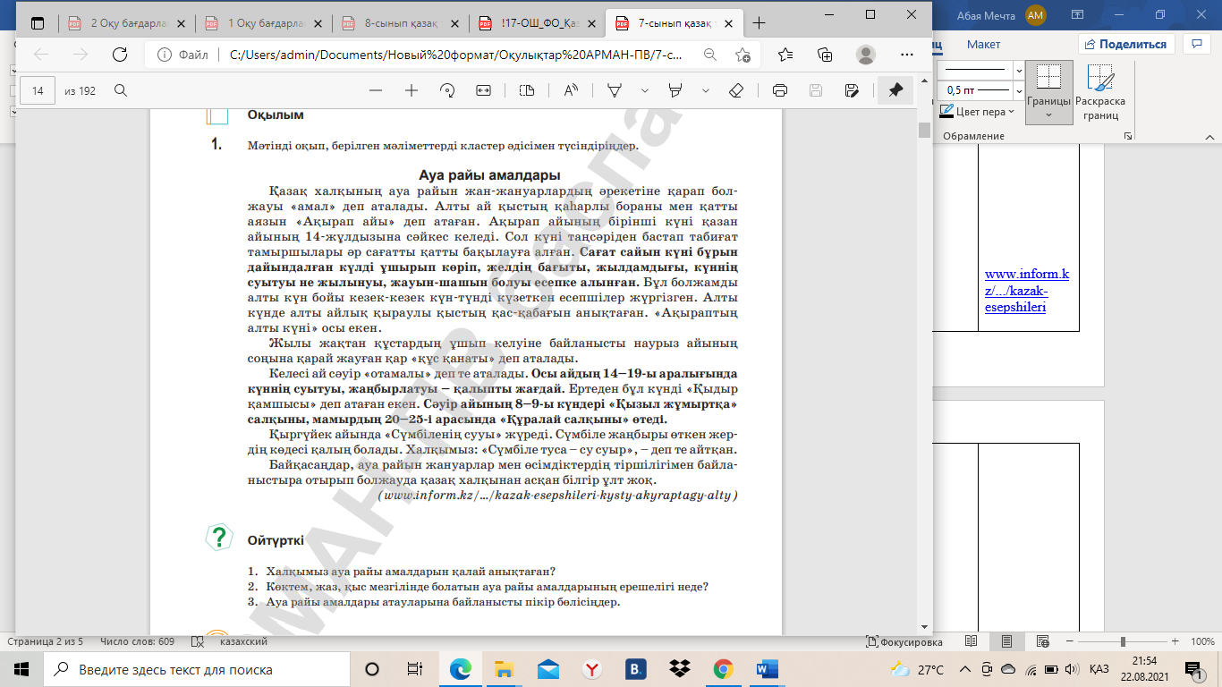 Ауа райына қатысты қазақ халының танымы. ҚМЖ 7-сыныпМатериал туралы қысқаша түсінік