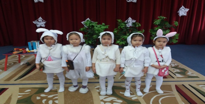 Автор: Осы кезде талдың түбінде тағы бірнеше қояндар тығылып отырады. Қояндар көрініп.