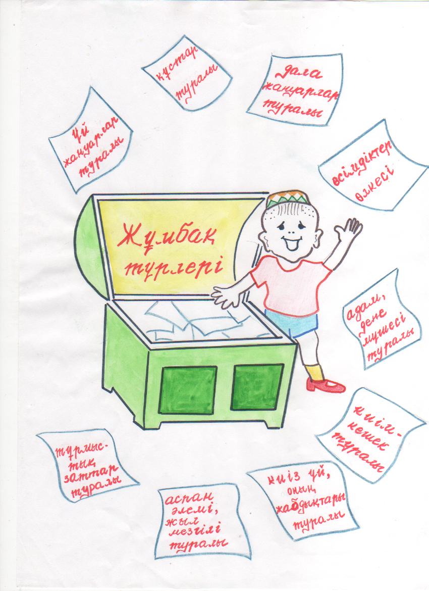 Халық ауыз әдебиетінің келесі бір түрі - жұмбақтар. Халық ауыз әдебиетінде жұмбақтар баланың ақыл-ойын дамытып, тіл байлығын жетілдіреді. Баланы ойлауға, жасырған нәрсенің шешімін табуға жаттықтырады. Жұмбақтың шешуін табуда оның құпиясы баланы қызықтырып, шешімін айтқызуға мәжбүр етеді. Баланың ұшқыр ойын іс-әрекетке баулып, ой санасының қызмет етуіне серпін береді. Жұмбақтың балаларға пайдалы жағы - өз бойындағы құпияны шештіру, айтқызу арқылы оларға өмірді танытады. Жұмбақты шешуде бала ойланады, көп нәрсені есіне түсіреді, заттарлың ұқсастықтары мен айырмашылықтарын іздестіреді, байқауға тырысады. Зерттеуші Ш. Ахметов жұмбаққа мынадай анықтама берген: «Жұмбақ дегеніміз- адамның қай затқа болса да поэтикалық көзқарасының қандай екенін сынау үшін, бір затты көркем тілмен жұмбақ етіп суреттеген, халықтық жанрдың бір түрі». Жұмбақтың тәрбиелік мәніне тоқтала отырып, балалардың жас еркешеліктеріне қарай тақырып мазмұны сәйкес жұмбақтарды таңдап алып, онда балалардың ақыл – ойын , логикасын, тілін дамытуға мән бердік. Баланың ақыл-ойын дамытуда танымдық қабілеттерін арттыруда, қиялын шарықтатып, тапқырлыққа тәрбиелеуде жұмбақ таптырмайтын құрал болып табылады. Жұмбақтар өз ішінде құстар, үй жануарлары, дала жануарлары, өсімдіктер өлкесі, адам дене мүшесі туралы т.б. түрлері болады.