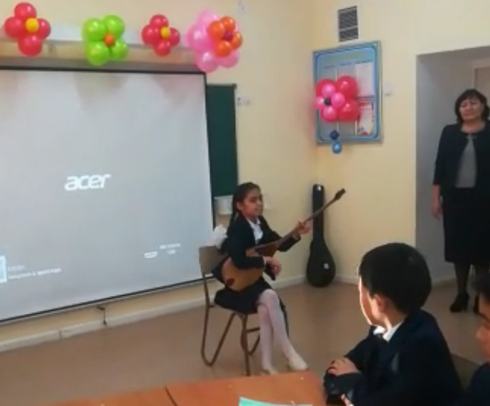 Сынып қыздары «Қазақ қыздары» әнімен.